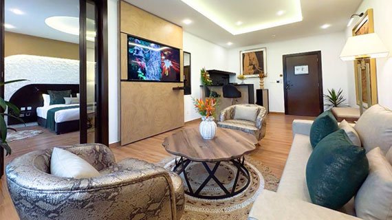 Spacieuse et raffinée, la Suite de l’Hôtel Bantu offre un confort exceptionnel avec un salon privé, un grand espace nuit et une salle de bain double vasques.